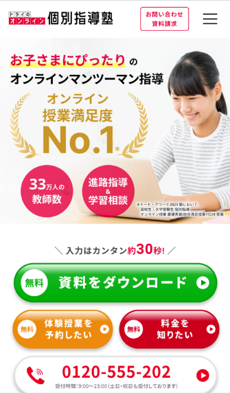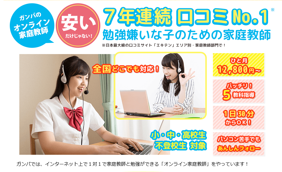 送迎の必要はないし、知らない人が家に入る不安もないし、お茶菓子を用意したりする手間もなく、非常に利用しやすくまたオンラインで行なう為、講師の移動手間もなく交通費や移動時間がない為、価格も通常の家庭教師より抑えられているのもポイントです。
