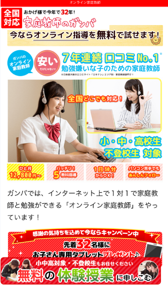 今、このサイトから無料体験を申し込み入会すると1カ月分の授業料が無料です