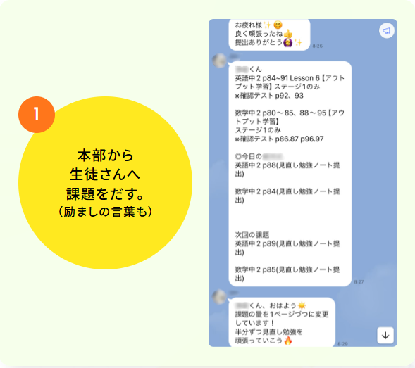 ・毎日本人のレベルに合わせて本部から宿題がでる