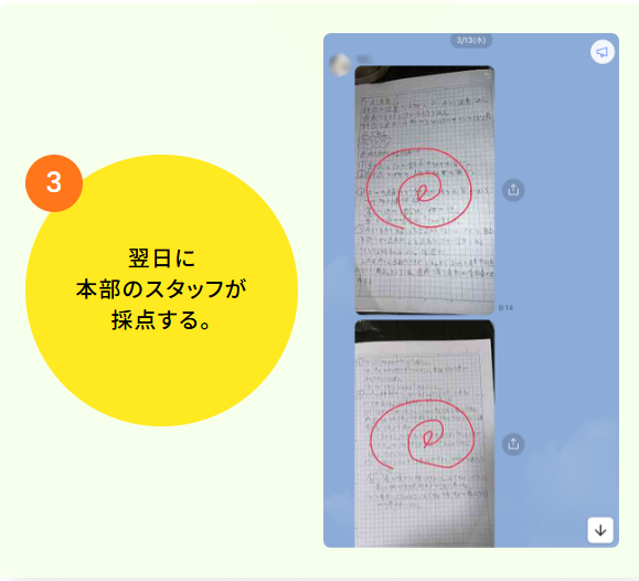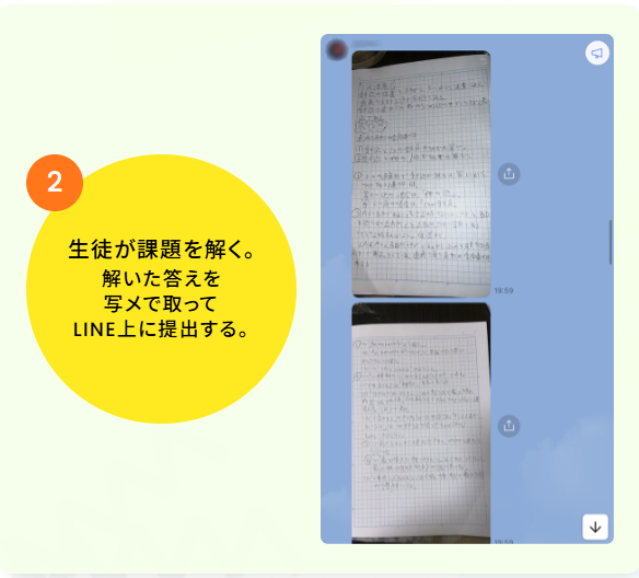 解き方の手順や途中式が間違っていたとしても、すぐにフォローができるため、対面授業にも劣らないきめ細やかな授業を可能にしています。