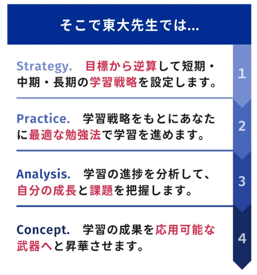 現役東大生たちがあたなの為に受験戦略・学習計画を作成してくれます。
